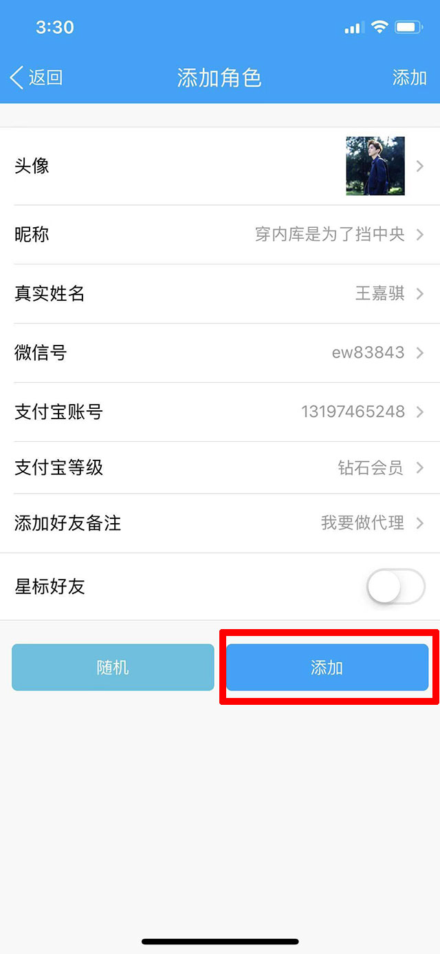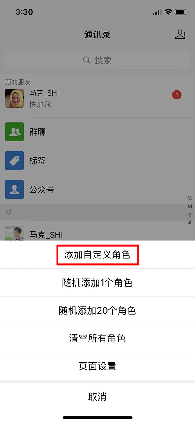 2.选择添加自定义角色(也可以随机添加1个或者20个好友)