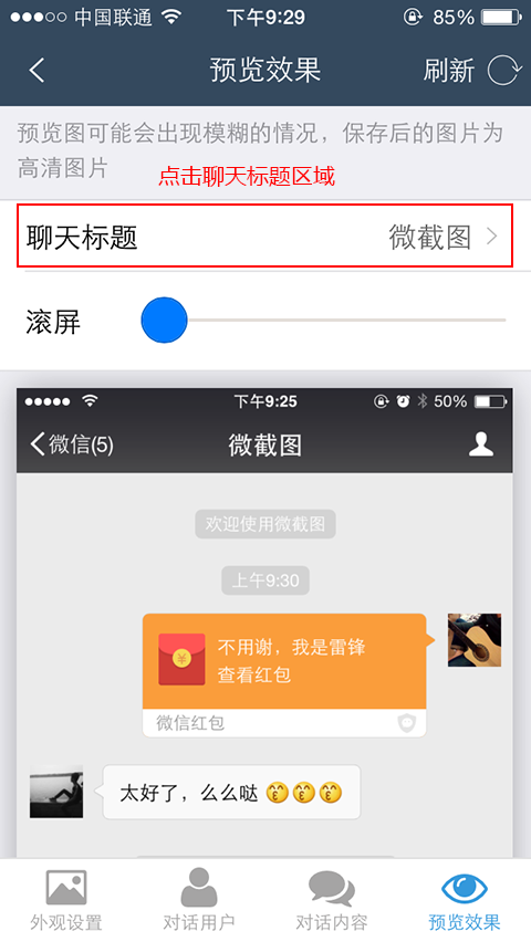 打开微信对话生成器,底部导航菜单选择“预览效果”