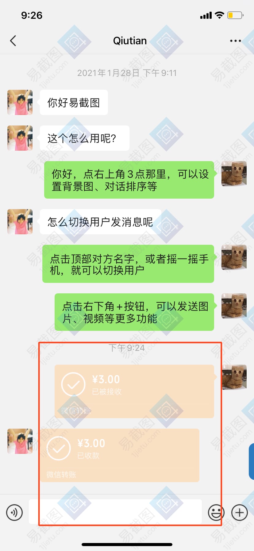 马上下载易截图试试微信聊天如何收钱?功能,支持苹果ios,安卓Android