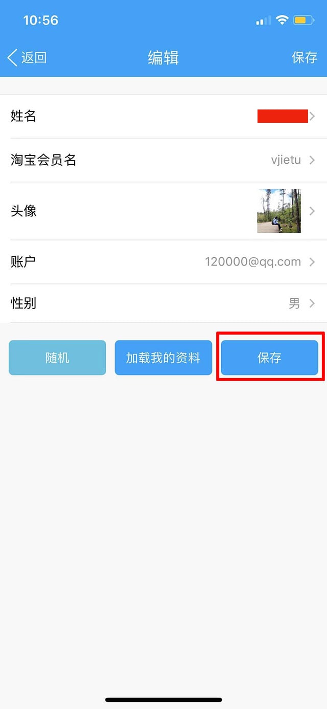 3.进入个人信息编辑页面,可以编辑姓名、淘宝会员名、头像等,编辑完成后点击保存
