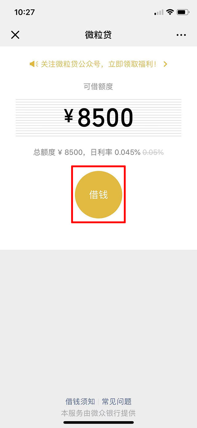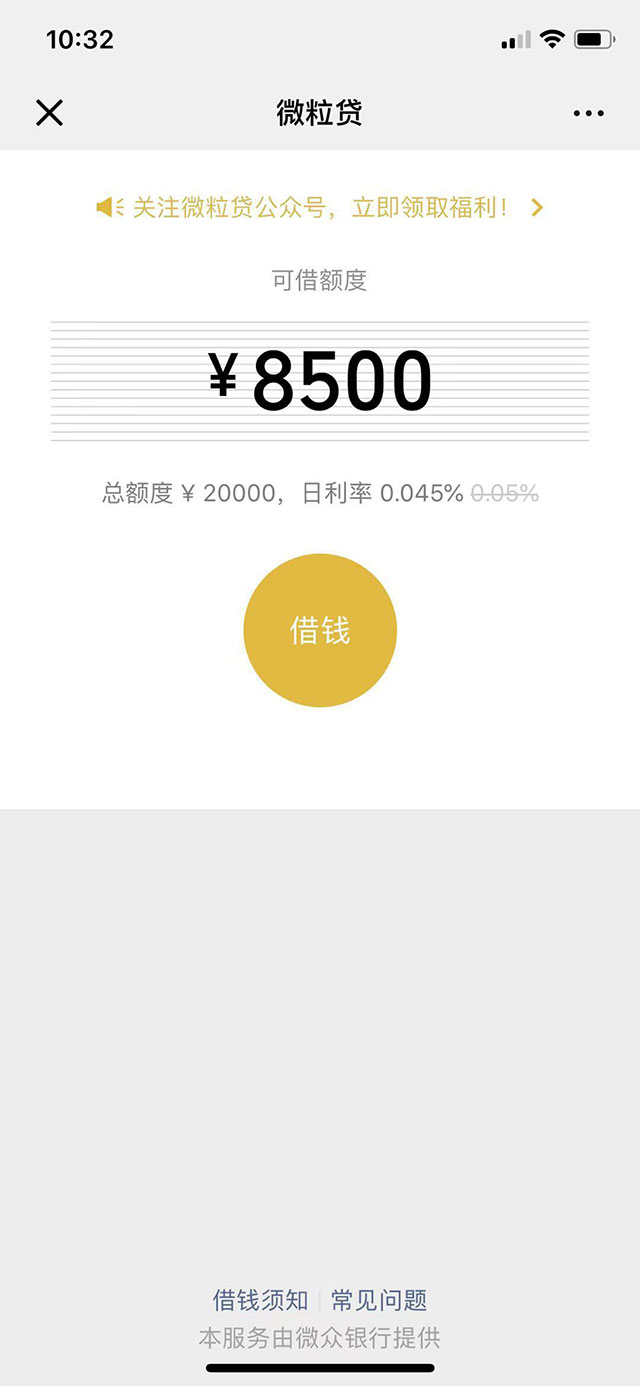 微信微粒贷生成器是一个模拟微信微粒贷页面的功能,此功能仅供娱乐,请勿用于违法犯罪行为!